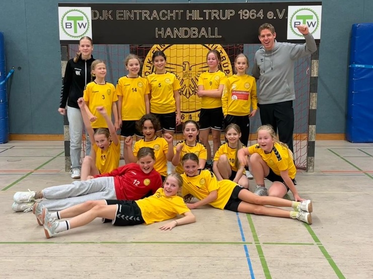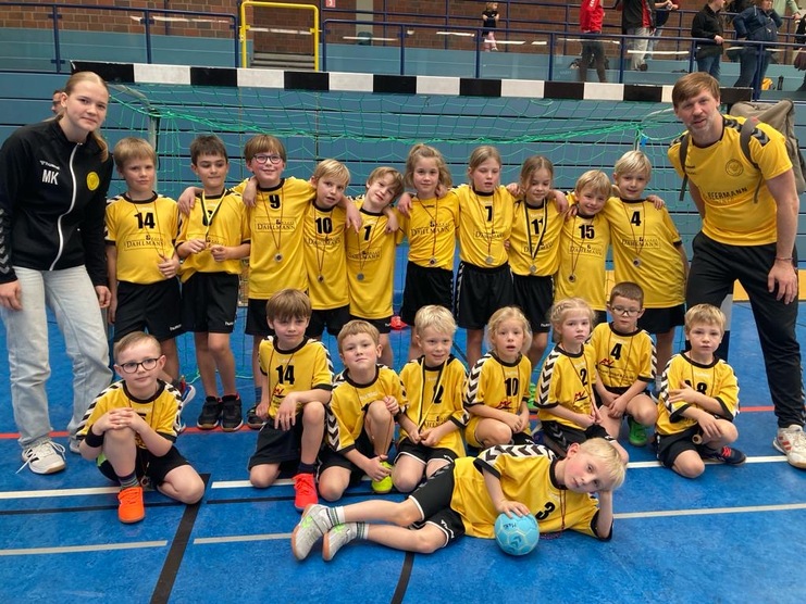 In Senden erfolgreich am Ball: Fiene, Jonte, Ida (2 Tore), Mia, Tristan (2), Till, Mats (3), Can (7), Jan (4), Joos (11), Fabi (1), Ferdi (2), Silas (1), Enno (2) und Bence und Luca als Support