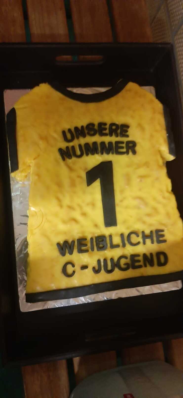 Nach dem Spiel gab es einen besonderen Grund zum Feiern: Die Eltern unserer Spielerinnen hatten eine schicke Torte gebacken, um den Erfolg des Teams zu feiern.