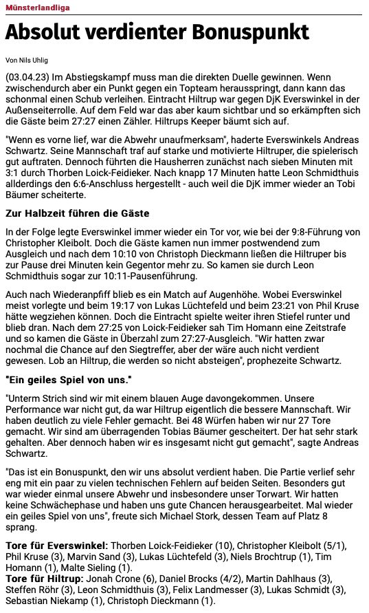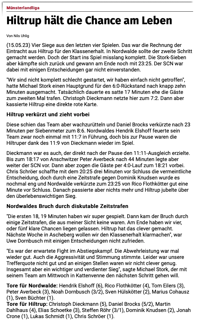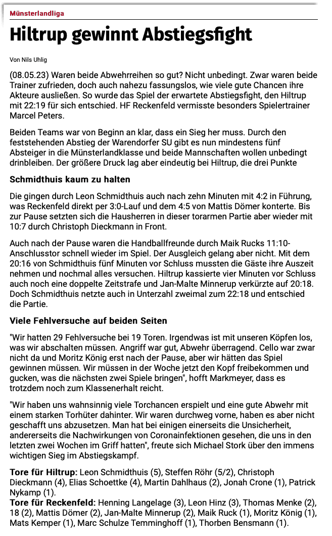 Hiltrup gewinnt Abstiegsfight