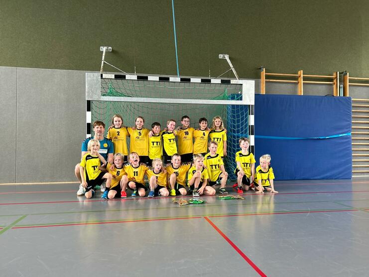 Nächster Gegner war die HSG Rietberg/Mastholte. Und die konnten sich gegen uns warm anziehen. Mit einer sehr sicheren und gut verteidigenden Abwehr inklusive zweier Topkeeper ( Fiene und Till - beide Prädikat: Bärenstark!!) wurde den verzweifelten Angriffsversuchen der Rietberger schnell ein Ende gesetzt und wir zogen Tor um Tor davon. 10:1 war der Zwischenstand nach elf Minuten . Angetrieben vom stark aufspielenden Mats, der an dem Tag sehr motiviert war und einige sehenswerte Tore im Kasten der Gegner versenkt hatte. Weitere Highlights waren auch die Tore von Flying Joos und die Torbelastungstests von Jan. Ka-Ching! Ebenso effektiv war auch die Achse Ida-Can auf der rechten Seite. Wenn Ida mal nicht ihre Gegenspieler in der Abwehr kalt gestellt hatte, glänzte sie mit einigen tollen Anspielen auf den Flügelflitzer Can, der die Pille einige Male blitzsauber versenkte. Und nicht zu vergessen... Mr. Ich-spiele-überall-Jonte. Aufgrund einiger kurzfristiger Ausfälle wurde Jonte im Feld benötigt. Und diese Lücke füllte er mehr als gut. Fleißpunkte verdienten sich aber auch Luca am Kreis, Silas in der Abwehr, Fabian auf der Mitte und Henri aka Racki auf der Außenbahn. Auch wenn mal keine Tore geworfen wurden. Egal, es zählt die Leistung des Teams. Und die stimmte am Ende - 15:4.