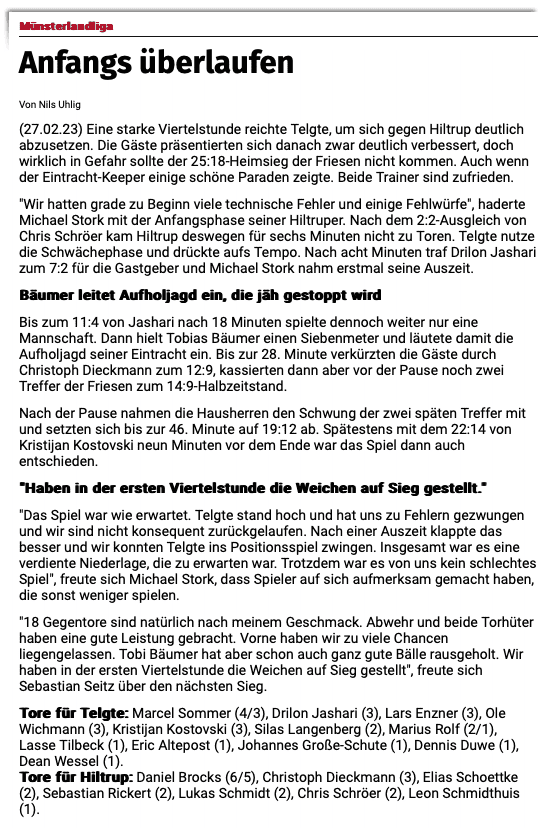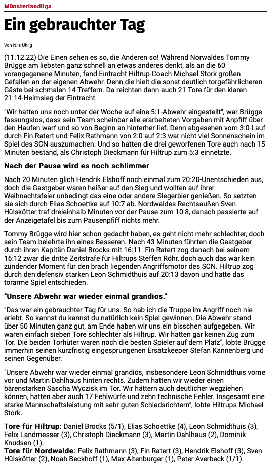 P.s. wer nicht bis zu den ersten Heimspielen warten kann - am 07.01.2023 ab 12 Uhr finden die Handballstadtmeisterschaften in Kinderhaus statt. Auch in diesem Jahr wird unsere 1. Herren dort vertreten sein.