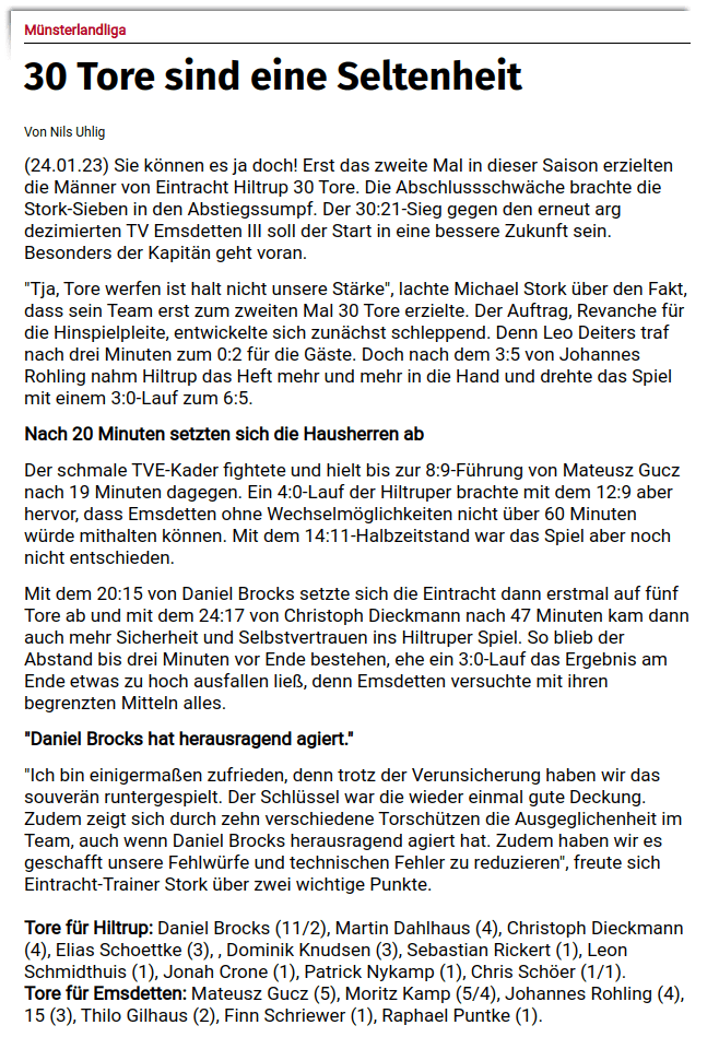 Sie können es ja doch! Erst das zweite Mal in dieser Saison erzielten die Männer von Eintracht Hiltrup 30 Tore.