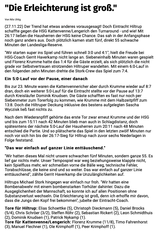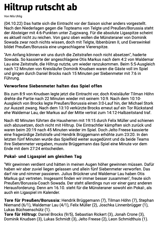 Ganz stark! Diese Leistung wollen wir fortführen. Und am Samstag treffen wir uns zum nächsten Derby gegen Gremmendorf. Da gilt es wieder die Punkte in Hiltrup zu behalten.