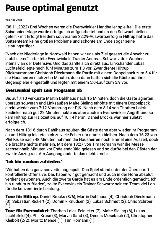 Drei Wochen waren die Everswinkler Handballer spielfrei.