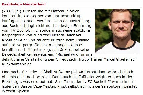 Turnschuhe mit Platteau-Sohlen könnten für die Gegner von Eintracht Hiltrup künftig eine Option werden. Denn der Neuzugang aus Bocholt bringt nicht nur Landesliga-Erfahrung vom TV Bocholt mit, sondern auch eine stattliche Körpergröße von rund zwei Metern.