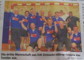 Am Samstagnachmittag trug die Eintracht ihr jährliches Turnier in der Sporthalle Hiltrup-Ost aus. Das Turnier ist vereinsintern, und es spielen drei Fußball- und drei Handballmannschaften gegeneinander. In jeder Mannschaft waren vier Feldspieler und ein Torwart. Jeder spielte gegen jeden, ein Endspiel gab es nicht und gewonnen hat die Mannschaft mit den meisten Punkten.