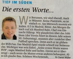 "Es soll ein launiger Abend im Zeichen des Sports werden", sagt Bahr. Sein Wunsch für den Verein? "Vielleicht packen wir mit der ersten Mannschaft irgendwann noch einmal den Aufstieg in die Landesliga. Das wäre ein Ding - auch wenn es zurzeit unrealistisch klingt."