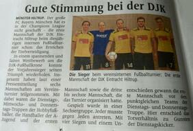 Der große FC Bayern München hat es in der Champions League nicht geschafft, die 1. Mannschaft der DJK Eintracht Hiltrup beim diesjährigen internen Fußballturnier schon, das Erreichen der Titelverteidigung. In einem spannenden und fairen Wettbewerb um die DJK-Fußballkrone konnte der Vorjahressieger seinen Triumph wiederholen.