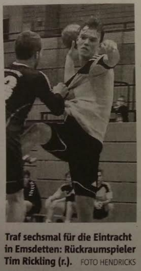 Tore Eintracht: Rickling, Maaß (je 6), Hanke, Spaetke, Limke (je 3), Weyer (2), Crone (2/1), Dahlhaus, Kunze, Schmitz (je 1)