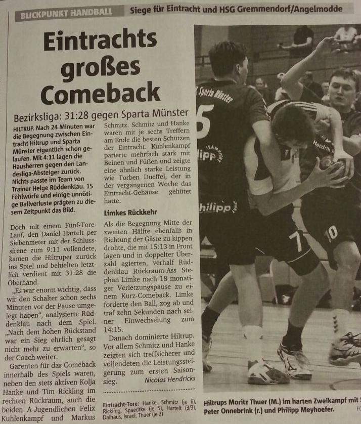 Eintracht: Spaedtke (17), Keilmann, Weyer (je 4), Hartelt (4/4), Crone (4), Dahlhaus (3), Pohlmann, Israel (je 2), Piltz (1), Wyczisk (TW)