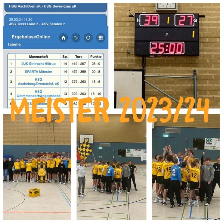 Es ist geschafft. Wir sind Meister!!! Aufgrund einer tollen Mannschaftsleistung haben wir Sparta Münster mit 39:27 niedergerungen und uns vorzeitig die Meisterschaft gesichert. Dies war die Pflicht, in den letzten beiden Spielen wollen wir noch die Kür und unsere makellose Serie beibehalten. Stolzer können die Trainer Jesse, Patrick und Dossi nicht auf diese Truppe sein.